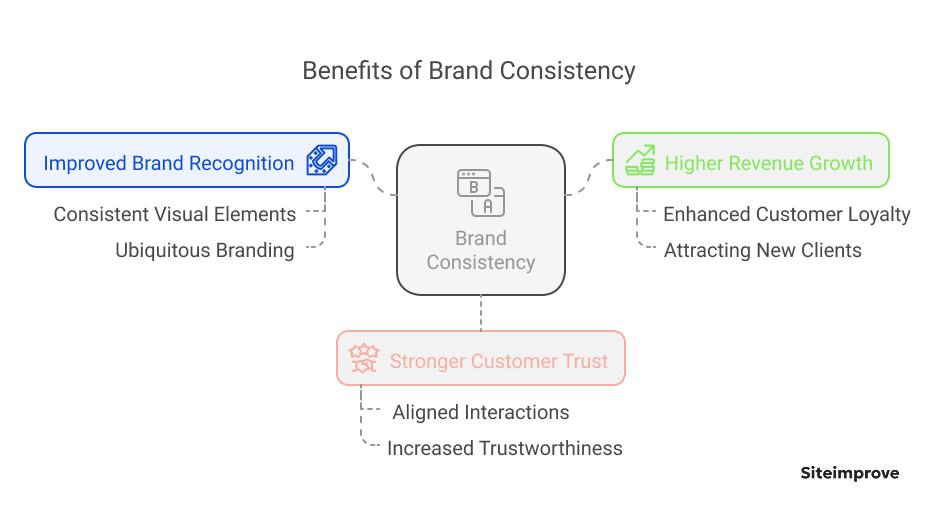 Stronger customer trust: Consistent branding is linked tightly with trust. Eighty-seven percent of consumers are more likely to pay more for products and services from brands they trust.