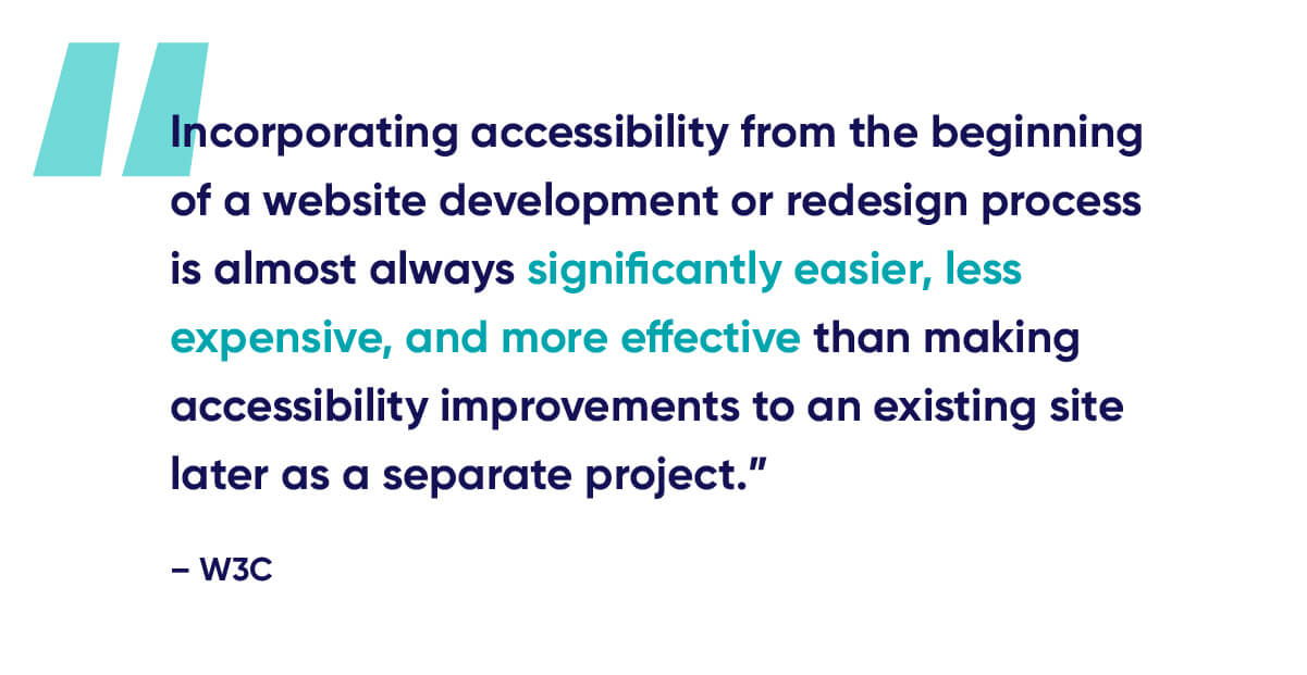The optimal way to create a truly inclusive digital experience for all your site visitors is to integrate accessibility directly into your design and development process on an ongoing basis, rather than applying it as an afterthought.