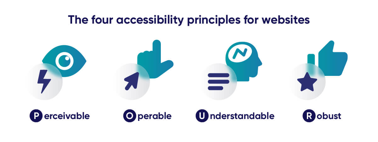 By learning and implementing best practices around web accessibility, you are also more likely to avoid future accessibility violations. The gold standard when it comes to inclusive design best practice is WCAG. For those who will be working with your website in a comprehensive way, such as developers, it’s a good idea for them to familiarize themselves with WCAG. For your wider team, they should at least know the four accessibility principles for websites.