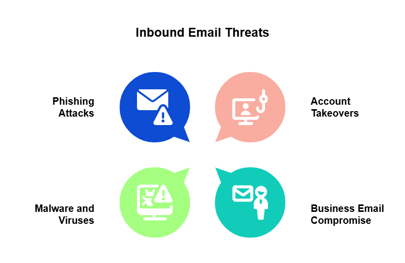 Inbound email threats are dangerous as well. Scammers may try to fool you into giving up information that they can use to infiltrate your email account or other systems.
