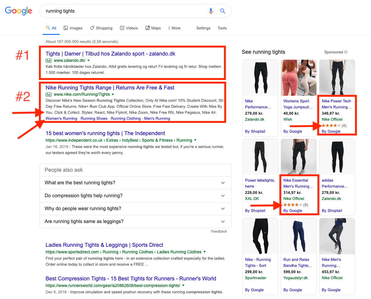 Advanced tip: Use Google Trends to research local interest in your keywords. You can also use Google Trends to compare different phrasing of your product. For example, in the screenshot below, you can see “running pants” is the preferred search term in the US, while “running tights” is more common in Northern Europe. This allows you to geo-target your audience and use the keywords they find most relevant.