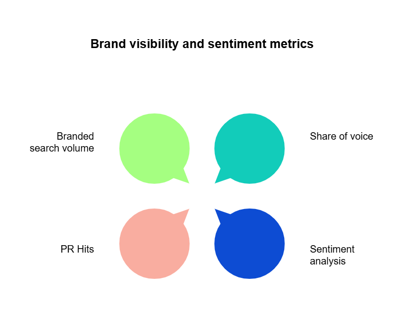 These metrics help you understand how visible your brand is in the market and how people feel about it. They’re especially useful for tracking awareness campaigns or monitoring your competitive position over time.