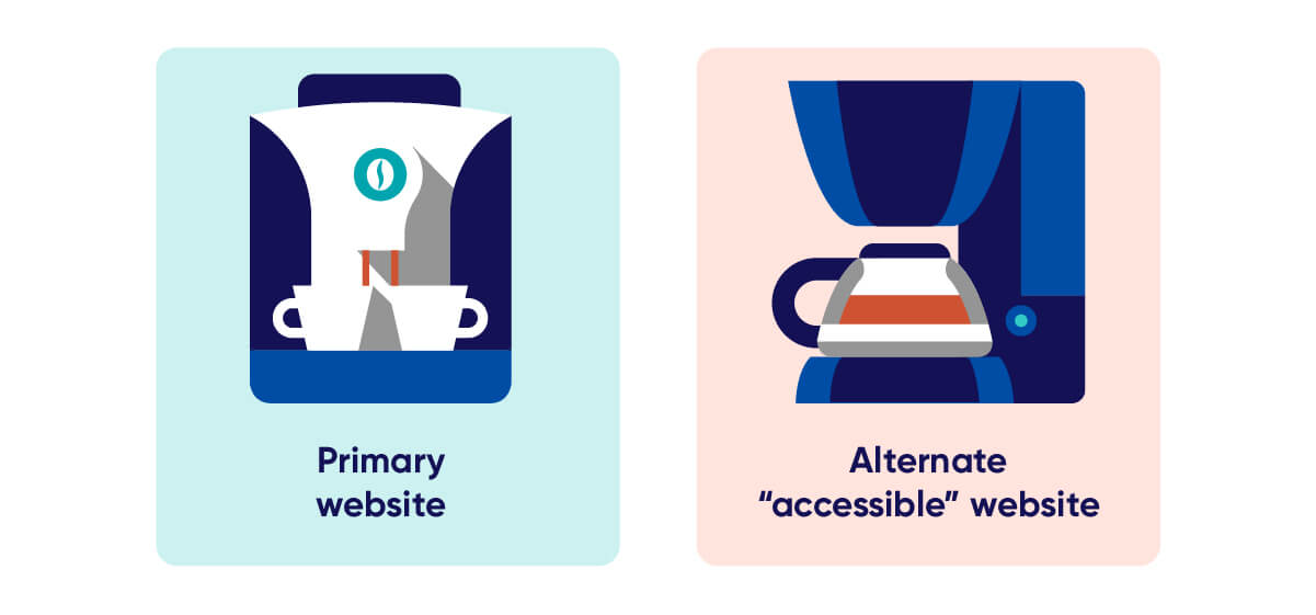 Overlay solutions typically provide a button that links to a separate website claiming to offer an equal, accessible experience. In practice, these accessible websites provide a reduced navigation, features, and content, thereby creating a truly separate, different experience for users with disabilities. This opposes ADA’s core intent to create full, equal enjoyment (source: Accessibility.Works).