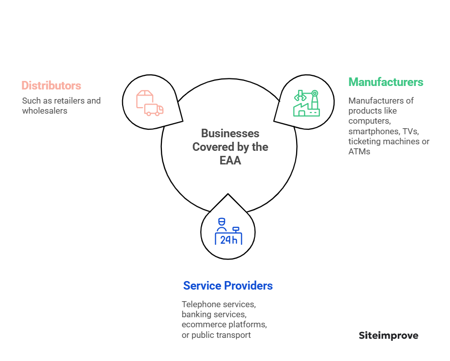 EAA doesn’t just apply to businesses based within the EU, but rather pretty much any entity that does business in the EU. That means it applies if you’re selling goods and services to customers there; working with a company that produces, distributes, or supplies and services in the EU; or if you’re a public agency.
