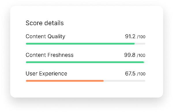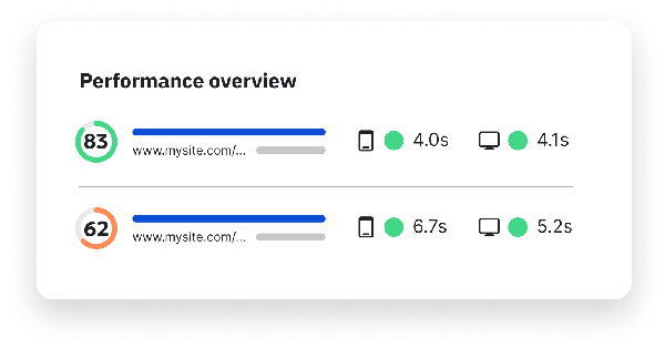 Track progress and document improvements to leadership and other stakeholders. Use the score to see how you’re doing, and to compare your website against industry standards or competitors.