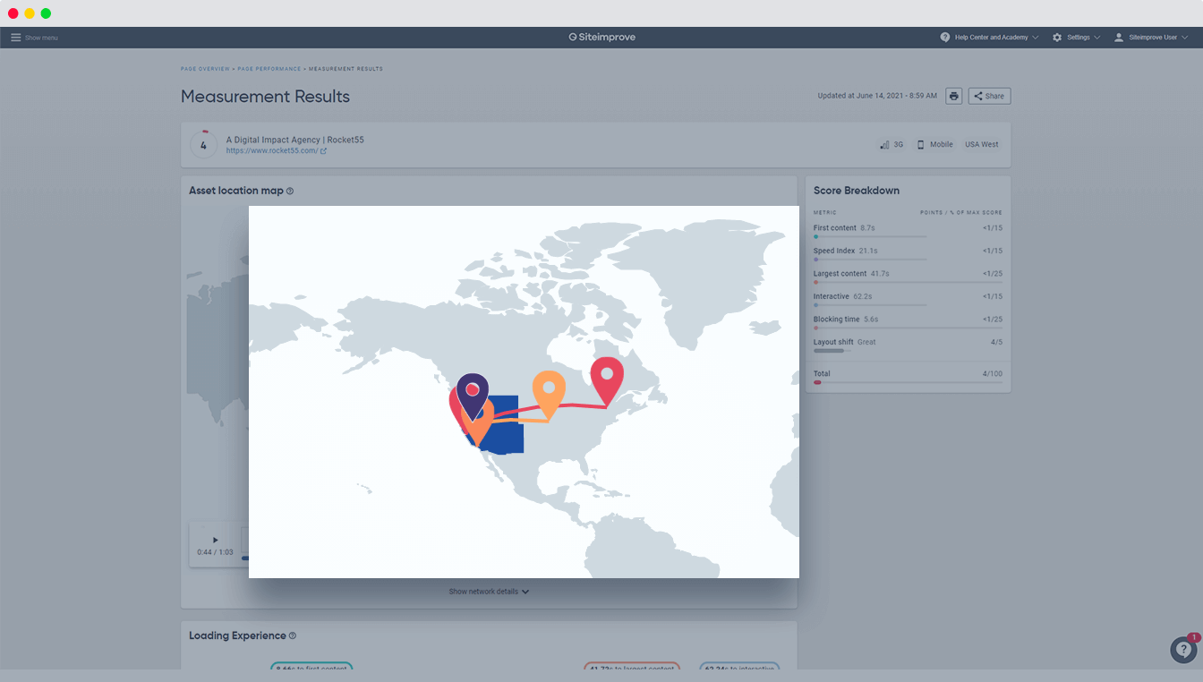 Siteimprove Performance hilft Ihnen dabei, die Ladezeiten Ihrer Website durch nutzerzentrierte Prüfungen, leicht verständliche Visualisierungen und einfache Erklärungen zu optimieren, damit Sie ein ideales Nutzererlebnis erzielen können.
