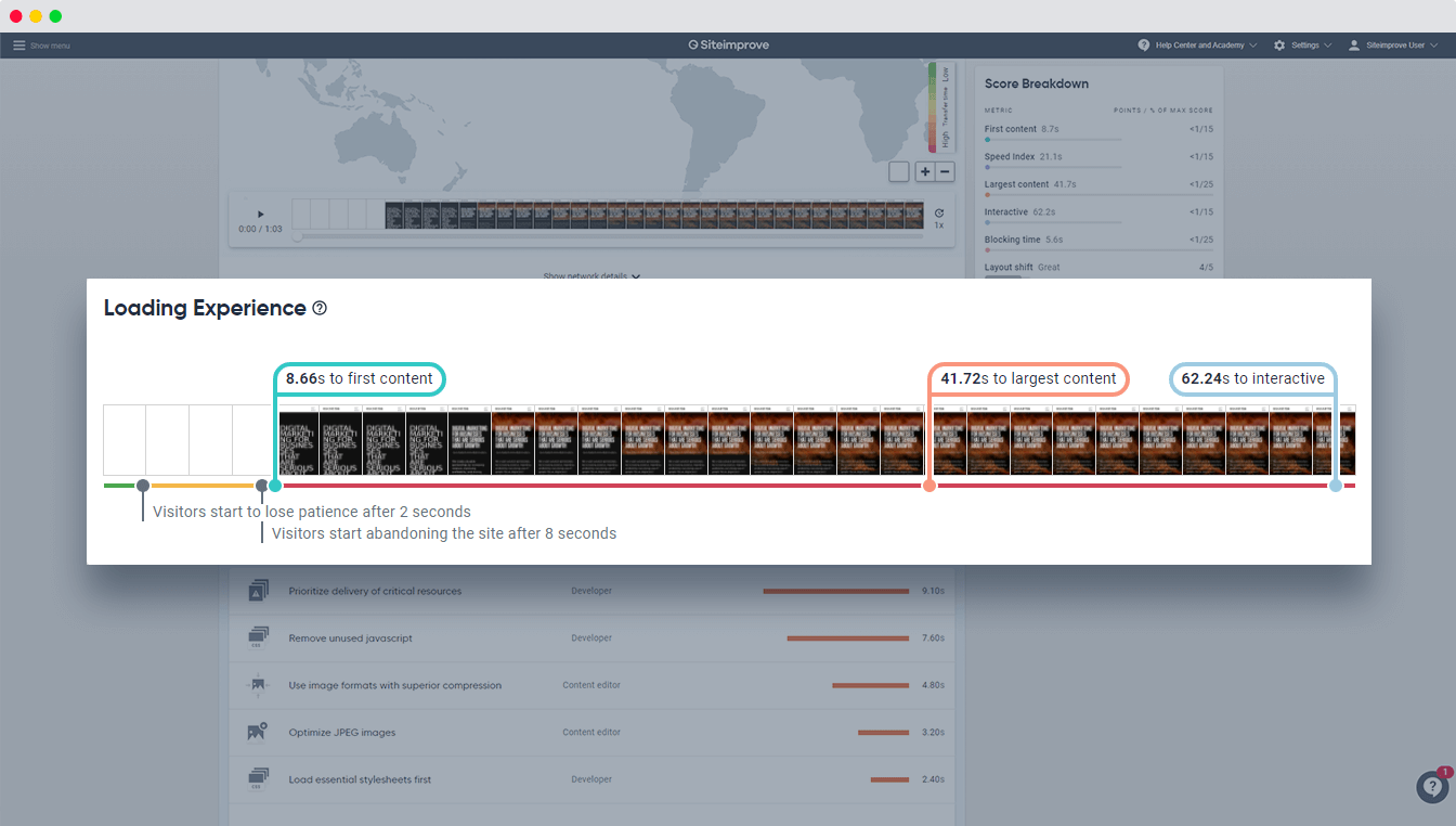 Siteimprove Performance bietet alles, was Sie brauchen, um eine schnellere Website und eine bessere Benutzerfreundlichkeit zu schaffen.
