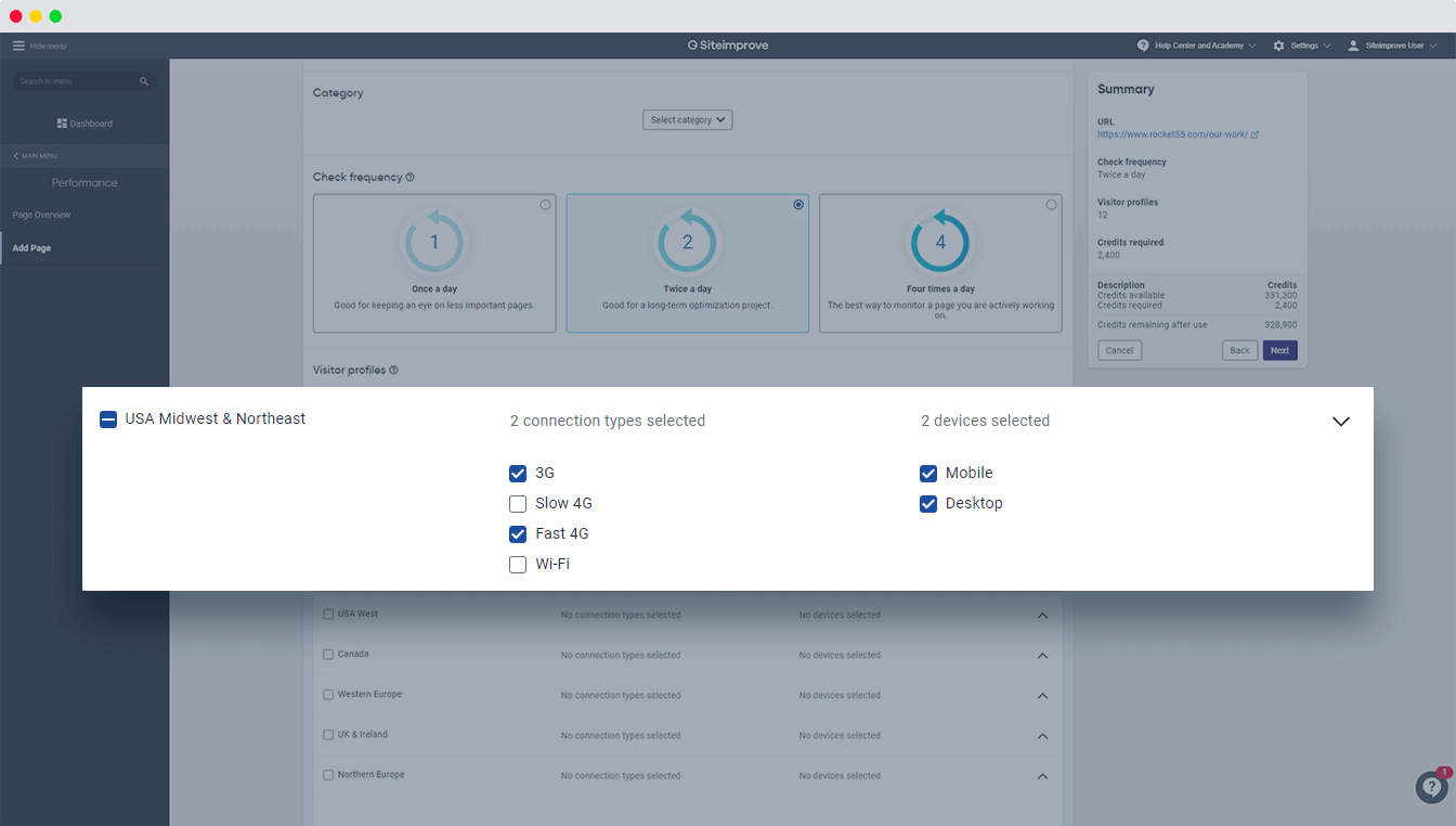Je nach Standort, Netzwerk und Gerät eines Besuchers haben Ihre Seiten ein unterschiedliches Ladeverhalten. Mit Besucherprofilen können Sie eine Kombination aus Einstellungen auswählen, die die Bedingungen Ihrer Besucher simulieren: