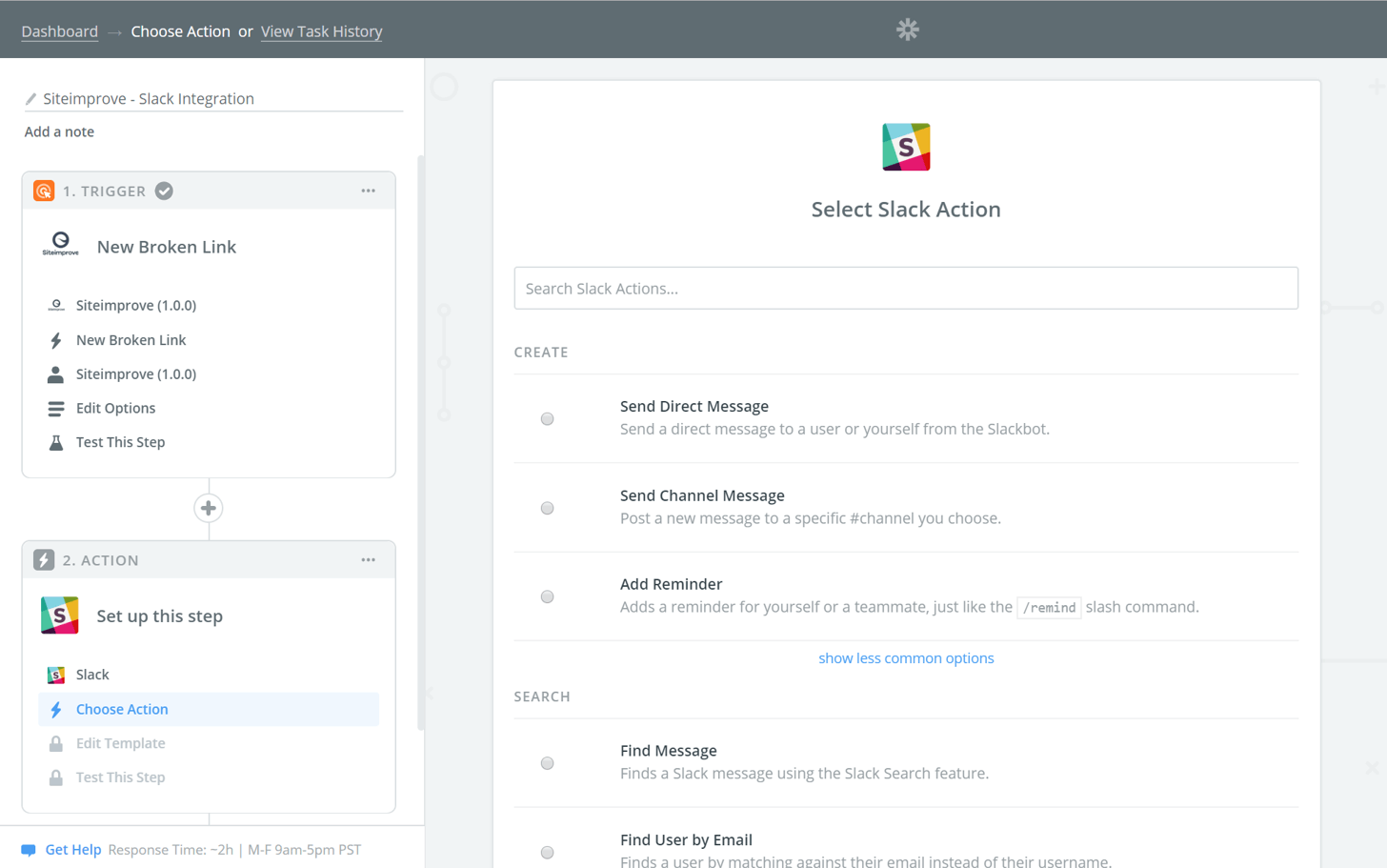 Currently, the Siteimprove Zapier integration is in Beta release. If you are interested in this Connector and want to start using it, this Help Center article will show you how.