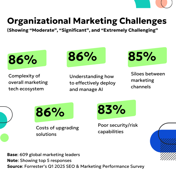 The data is clear: Marketing leaders overwhelmingly point to technology as a top organizational challenge, with complexity, costs, and AI all contributing factors.