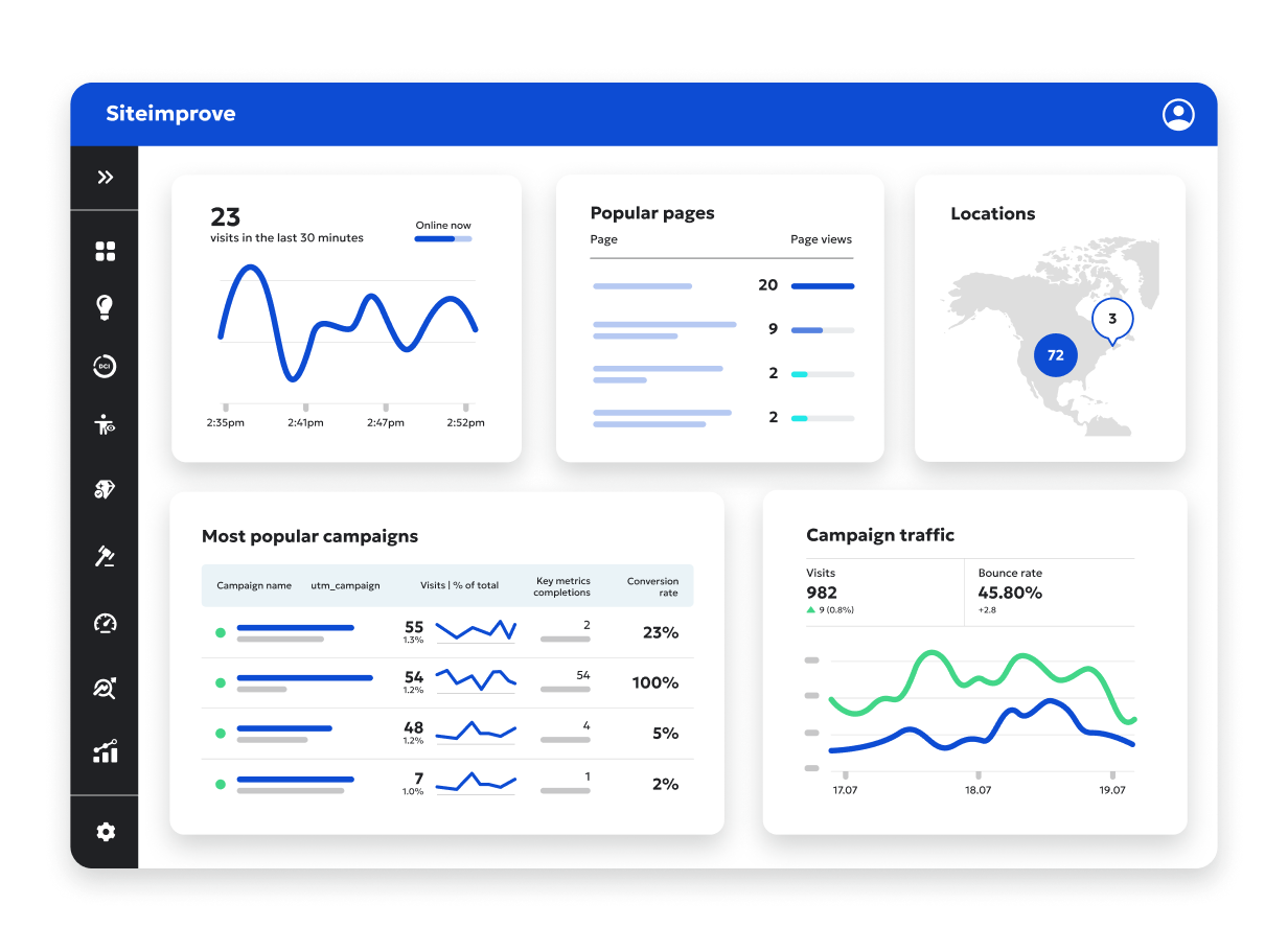 Siteimprove's analytics uses intuitive dashboards to show which content converts site visitors into patients and presents SEO and campaign data clearly, helping optimize funnels for better ROI.