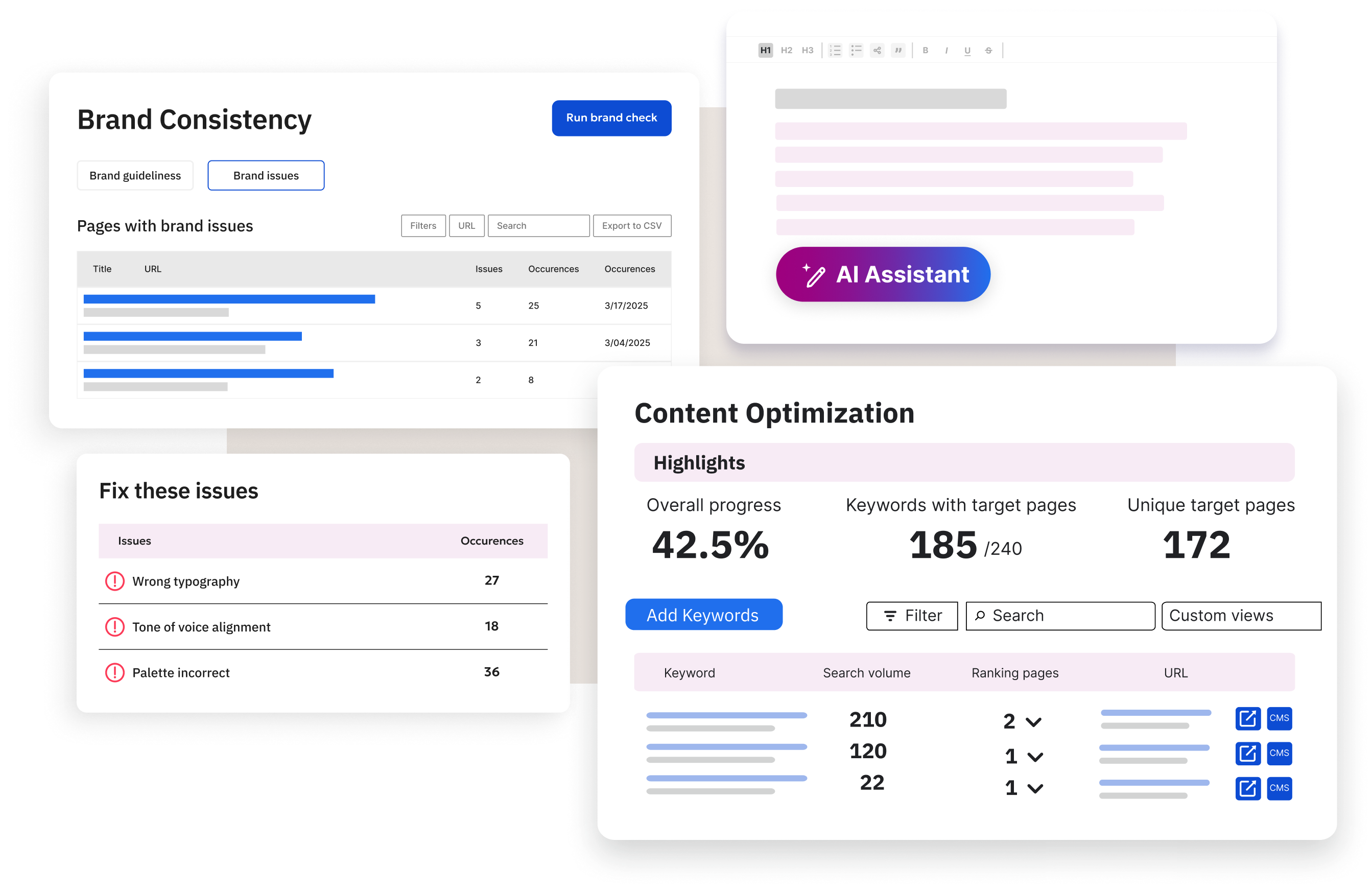 Turn your content creators into SEO powerhouses with our SEO Intelligence Suite. Our platform provides real-time, data-driven feedback directly within the writing process, so your team can optimize every article for search performance before you ever hit "publish."